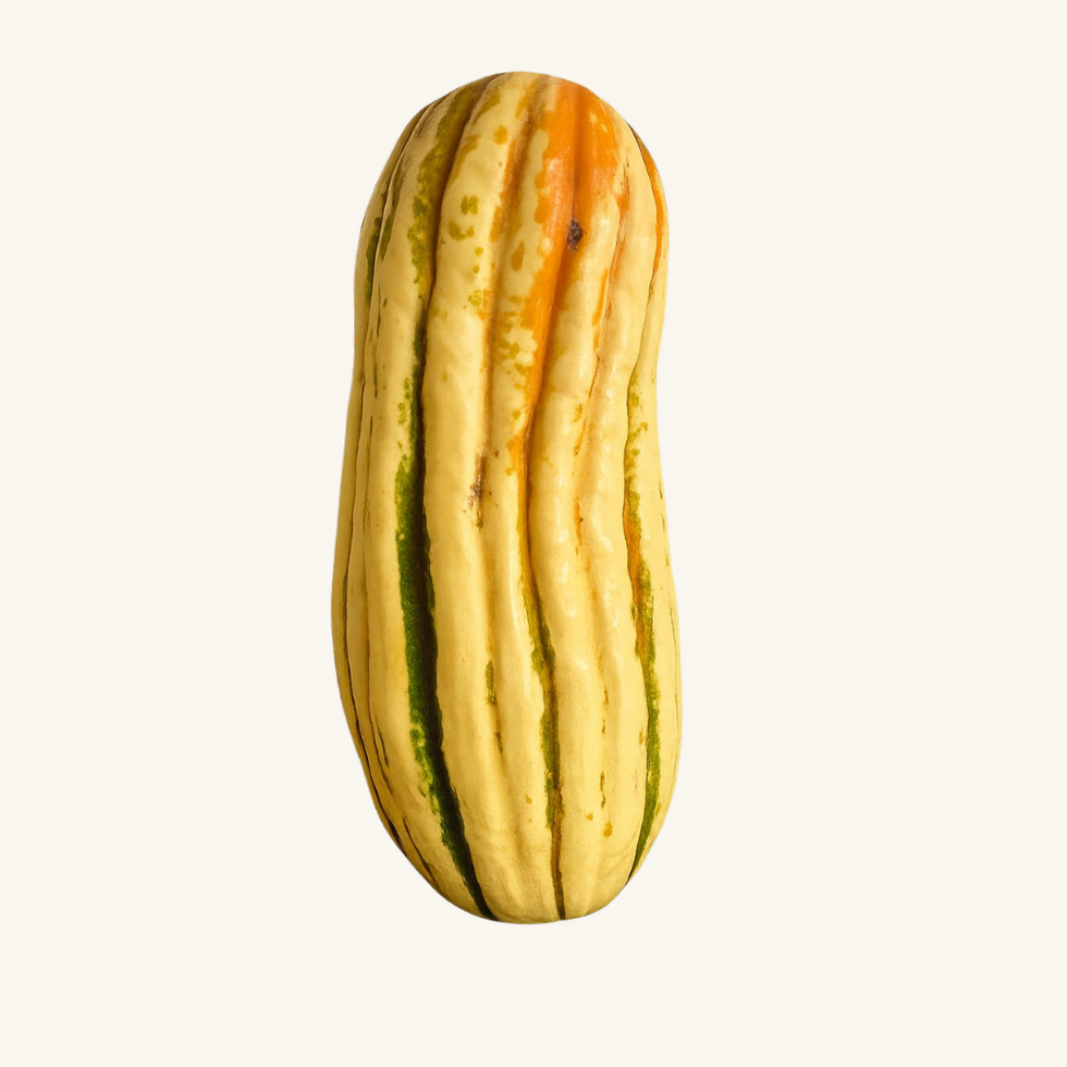 A tender and naturally sweet squash with edible skin and a soft, velvety texture. Delicata is a seasonal gem that’s effortlessly prepared: simply cut in half, roast or steam, and enjoy with butter and salt. For a sweet twist, try it warm with vanilla ice cream. Its skin softens as it cooks, making it easy to prepare and minimizing waste. Delicate flavor, versatile use, and transparent origin. Grown in Baselland and certified IP-Suisse.